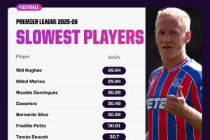 本赛季英超最慢球员: