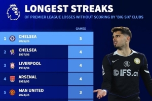 德转列BIG6在英超被零封连败榜:切尔西本赛季5连败创纪录