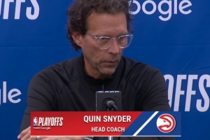24直播网4月21日讯 NBA季后赛东部首轮G2,老鹰107-106险胜尼克斯,大比分1-1战平。赛后老鹰主帅斯奈德接受了媒体采访,以下为采访全文。