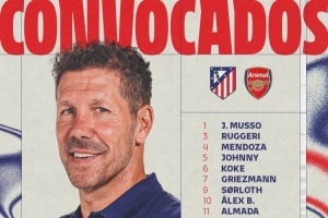 马竞对阵阿森纳首回合名单